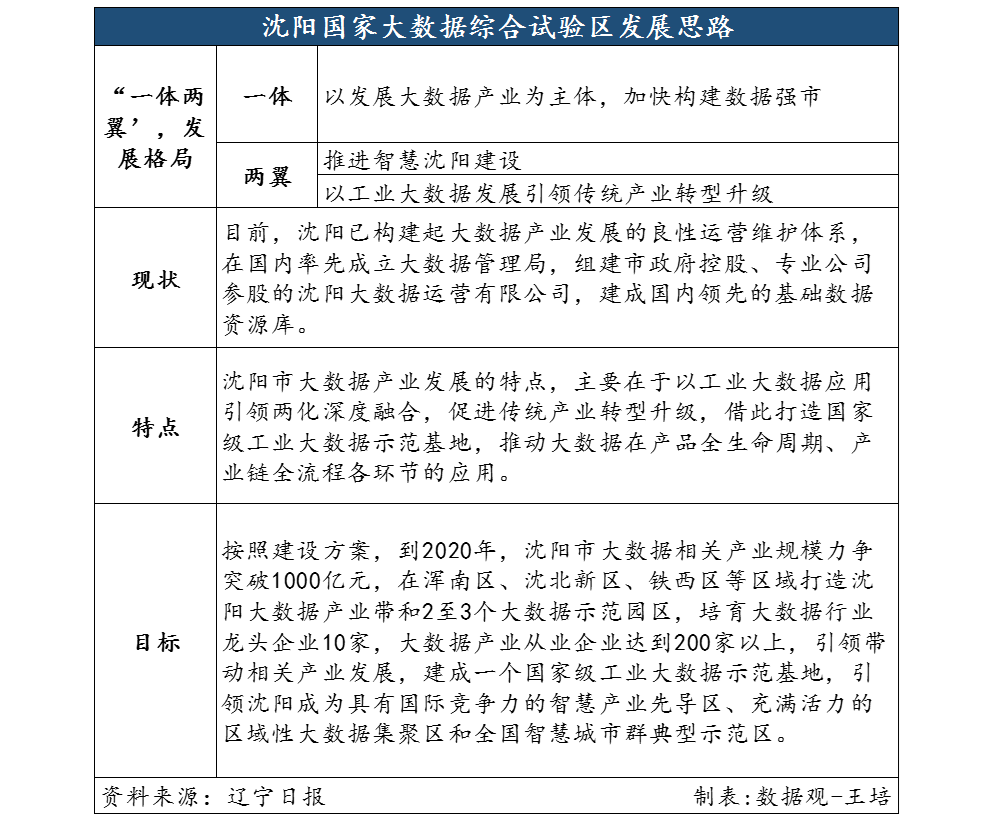 2016年10月8日,沈阳市获国家发展改革委、工业和信息化部、中央网信办发函批复建设国家大数据综合试验区,沈阳成为东北地区唯一、全国副省级城市中唯一的国家大数据综合试验区。