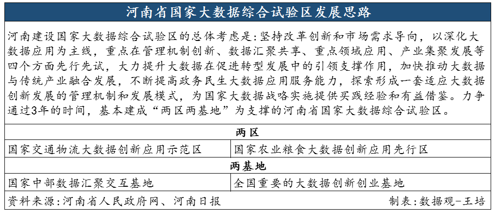 2016年10月8日,国家发展改革委、工业和信息化部、中央网信办发函批复,同意河南省建设国家大数据综合试验区,河南成为继贵州之后第二批获批建设的国家级大数据综合试验区的省份之一。