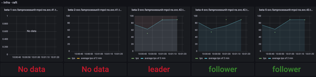 故障注入期间,整个集群由新选举产生的领导者节点继续处理线上流量。其中,1号节点和2号节点由于故障注入导致短时间内不可用。