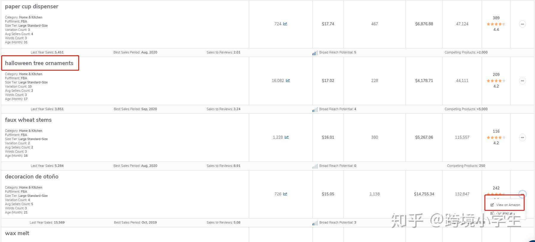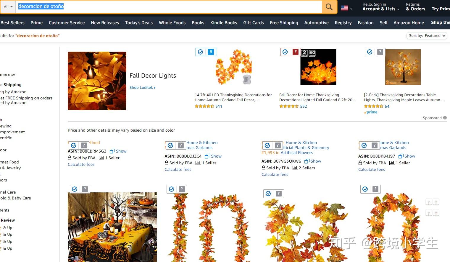 如果对一些单词不认识,或者对某个关键词感兴趣,可以直接点击view on amazon跳转到亚马逊前台看具体是什么产品,如上图中的decoracion de otoño,来到前提才发现是西班牙语秋天装饰品。