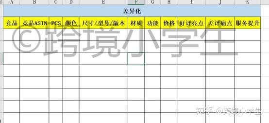 如果你跟住了我的思路并且予以实践,你的产品池里现在应该有一大堆待确认的产品了。那么如何快速地跟理想产品的基本画像进行比对,得出最终选品结论?这里我们需要借助高效率的Excel表格。我在几年的工作中,制作了大量表格,这些表格提高了工作效率和成功率。现在将选品表格分享给你们。这里无法上传完整表格,我将表头粘贴出来,如果需要完整表格,大家可以到公众号(kjxxs01)中,输入“选品表格”索取。