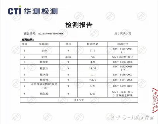 质地非常紧实,甚至能看到细小的肉丝,闻起来有淡淡的肉松香味,肉源清晰且含肉比较高,号称不添加任何胶质和诱食剂,极低的淀粉含量,公众号上有每一期的质检报告,这点非常增加好感。咨询过客服,说是连牛磺酸和维生素都没有的完全零添加,稍微存疑。暂时没有找到槽点,总体还是很推荐。