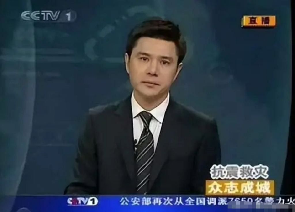 赵普在播报汶川地震时,突然声音哽咽,泪流满面。